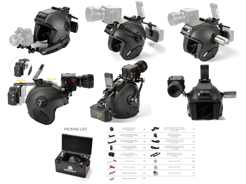 軽量のカーボンファイバー製、2種類のアームマウントにより多様な目線に合わせたカメラ調整、カウンターウェイトを使用したサイドポジションにマウントすることも可能です。