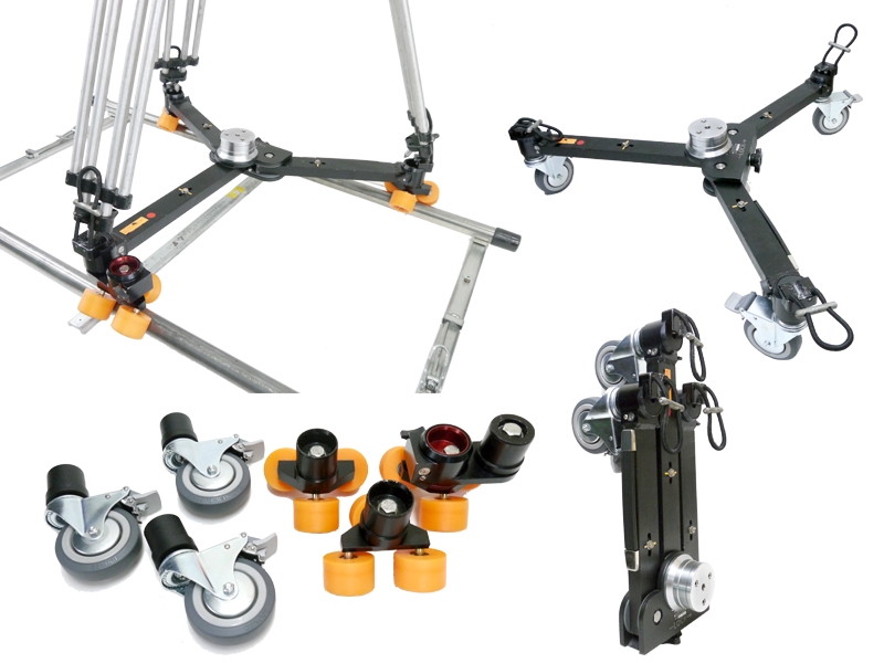 ユニバーサルローリングスパイダーは、キャスターのローリングスパイダーとして使用出来るだけでなく、ウィールレッグに交換することでレールでのドーリーショットにも対応することが可能です。