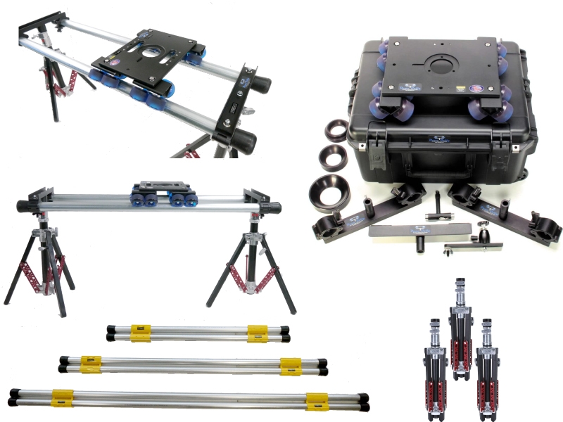 精度の高いポリウレタンウィールを使用したカメラトラッキングシステムです。 150Φ、100Φ、75Φ、NCミッチェルなど多様なヘッドに対応しています。 8feet 、6feet 、4feet単管レールが付属。 長さを指定した、オーダーカットも可能です。※最大4m